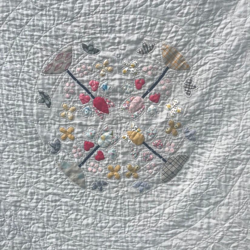 When I fell in love with a patchwork quilt it was the long life of these objects which beguiled me. The idea that a textile might be made from cherished fabrics, could include quilted motifs that reflect the maker or their home region, could be an item that became a legacy to a maker, and to hold memories for generations. Quilts have soul, they have emotional resonance, and even non-quilters feel the power of the weight that they haul through space and time.