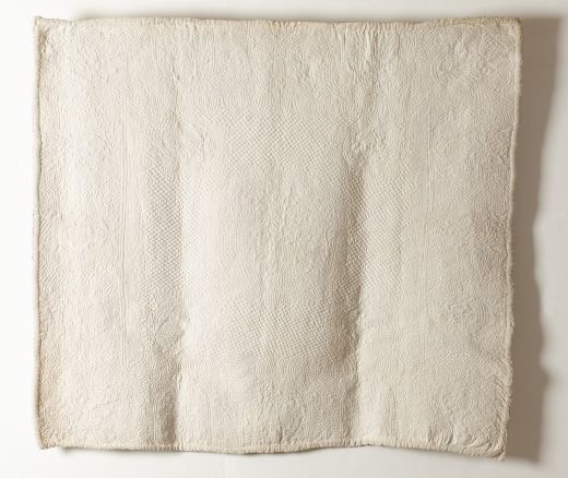 Baby quilts are some of the earliest extant versions that survive in British collections. Perhaps this is a quirk of their size, they are easy to store, and less likely to be deemed as taking up needed space and given away. Perhaps their only occasional use in the lifecycle meant that they were less worn. Or maybe, perhaps more likely, their preservation was emotional, kept as keepsakes, or talismans for generations to hold and use. Like all quilts, for baby quilts the demands of both use and sentiment overlap.